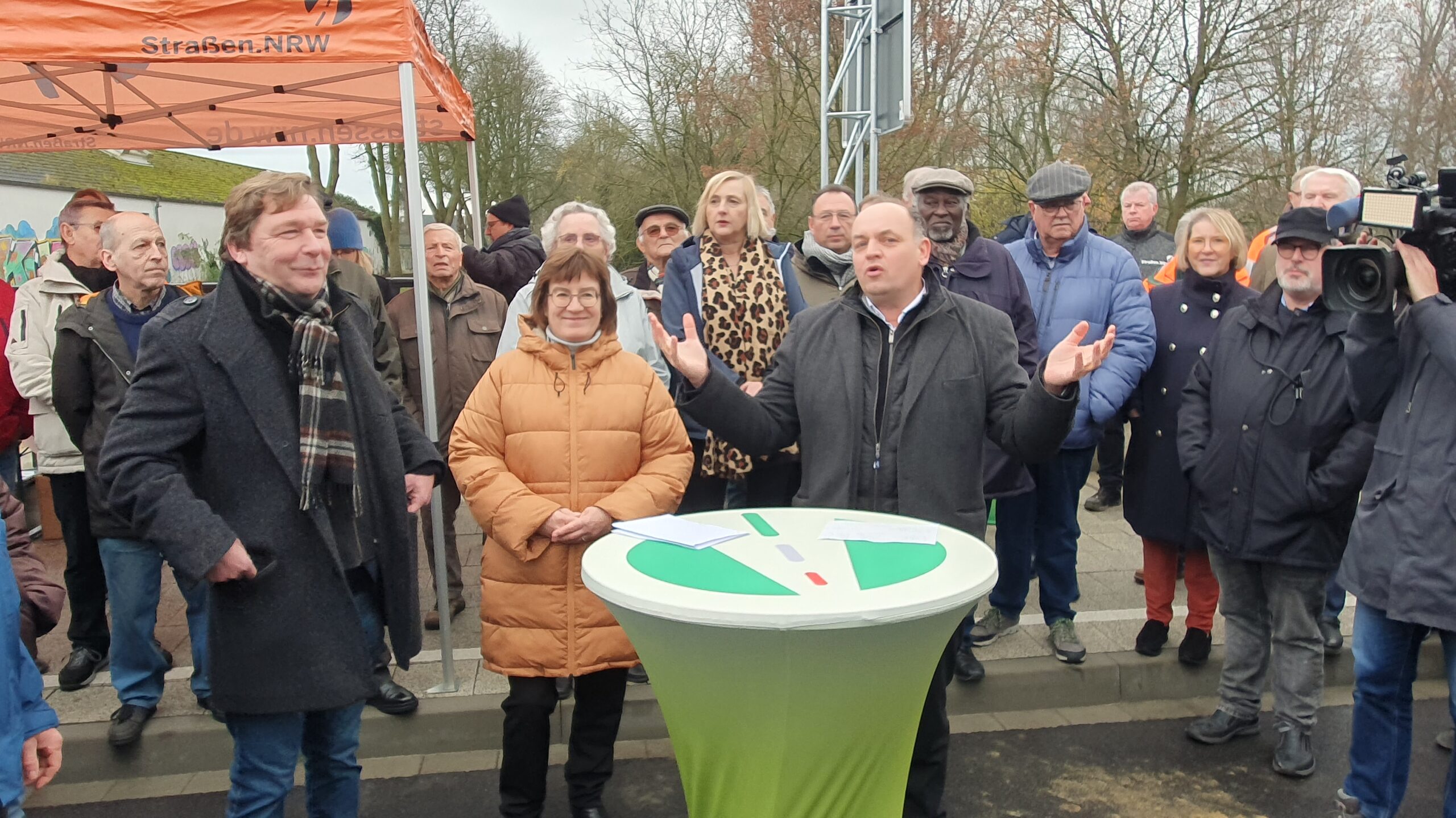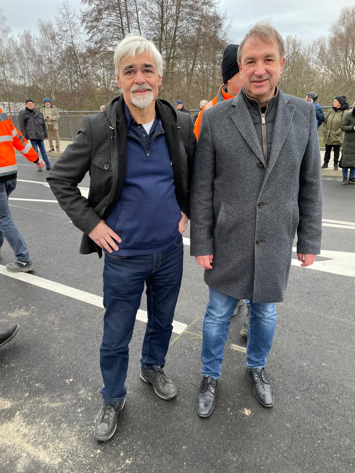 Bei aller Freude, dass nach zwei Jahren Bauzeit, der Autoverkehr fließt und Fußgänger und Fahrradfahrer viel Platz haben, überreichte Heinz Frey, Fraktionsvorsitzender der UWG-JÜL, Herrn Haase einen Brief an Herrn Minister Oliver Krischer mit unserer großen Bitte: